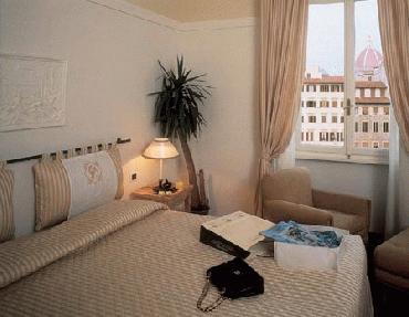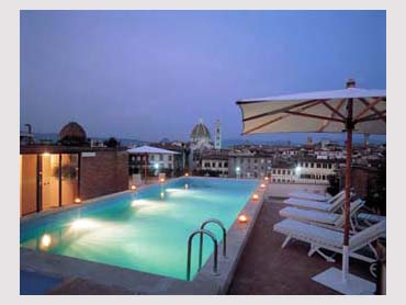 This exclusive 4 star superior hotel, considered the oldest hotel in Florence as already developed in the 18th century, is situated in the central Santa Maria Novella square. The hotel has 102 elegantly furnished styled rooms with a view of either the piazza or the Santa Maria Novella’s church cloister. It also offers the splendid roof swimming pool with a great view of the city of Florence. The hotel is equipped with an internet point, free wi-fi, and conventional garage parking.